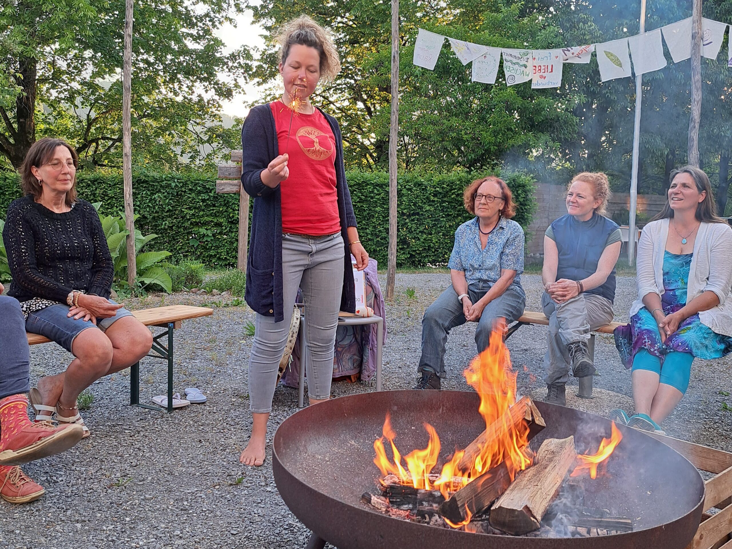 „Das Trauerritual war getragen von den kraftvollen schönen Frauenstimmen und den unterstützenden Energien unserer Gemeinschaft. Nach dem Ritual fühlte ich mich entspannt, verbunden, erleichtert und mit kraftvoller Hoffnung in meinem Herzen. Ich danke euch liebe Sabina, Anna und Kathrin für eure liebevolle und wertschätzende Präsenz und ich bin sehr dankbar dafür, dass ich meiner Trauer begegnen durfte und diese tiefe Erfahrung erlebt zu haben.“